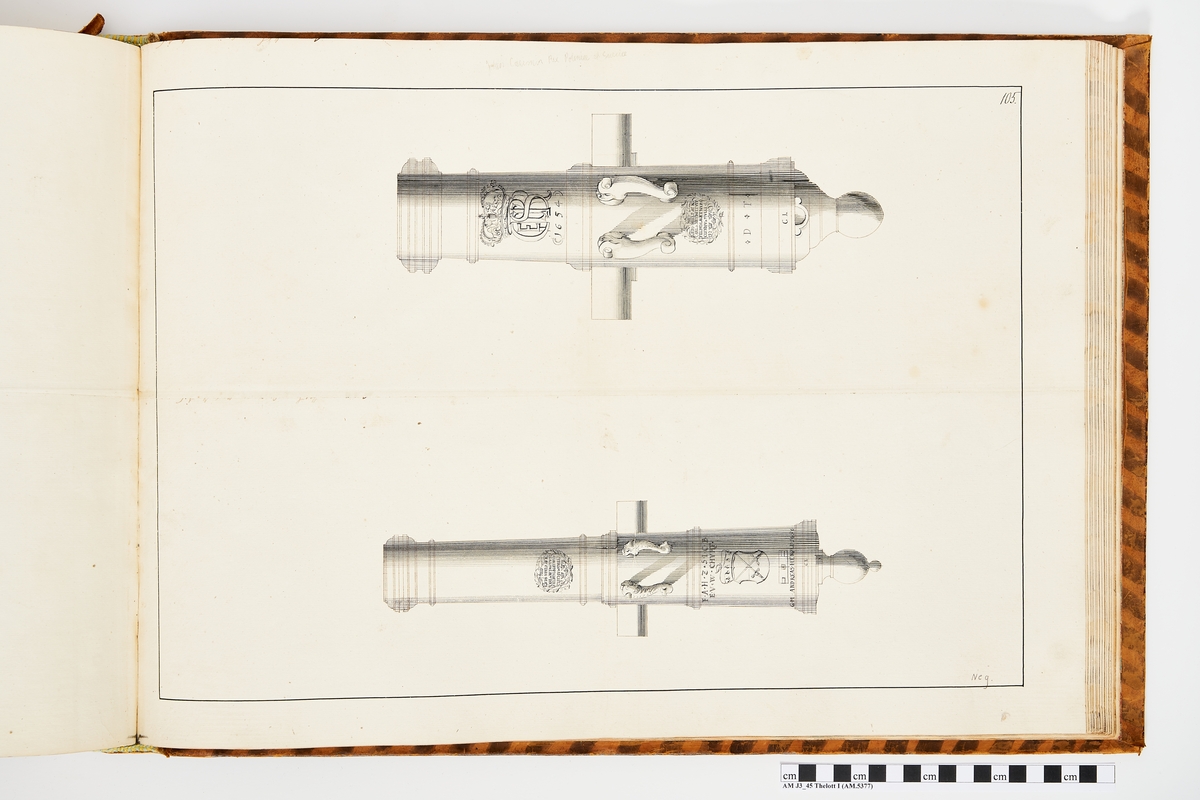 Avbildning föreställande eldrör tagna som troféer av den svenska armén i slaget vid Kliszów den 9 juli 1702. Ingår i volym med avbildade kanontroféer tagna åren 1700-1702.