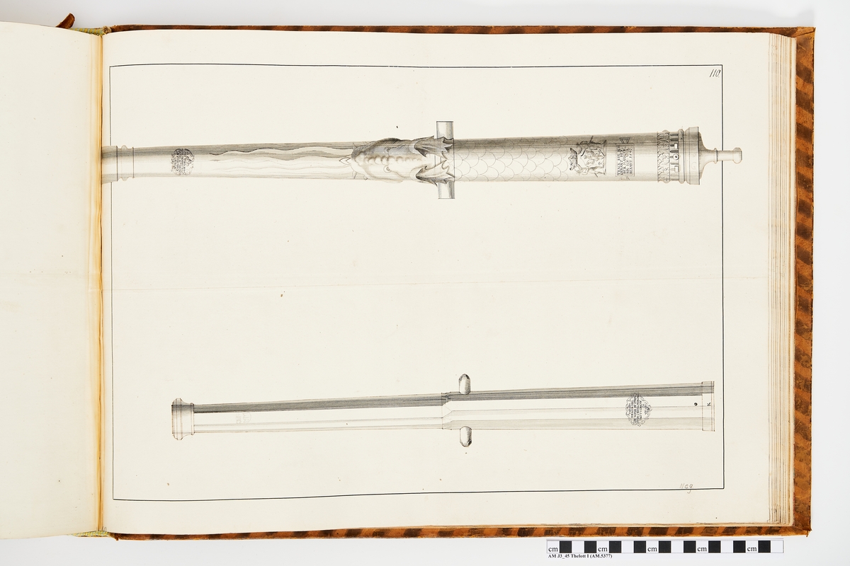 Avbildning föreställande eldrör tagna som troféer av den svenska armén i Kraków den 2 oktober 1702. Ingår i volym med avbildade kanontroféer tagna åren 1700-1702.