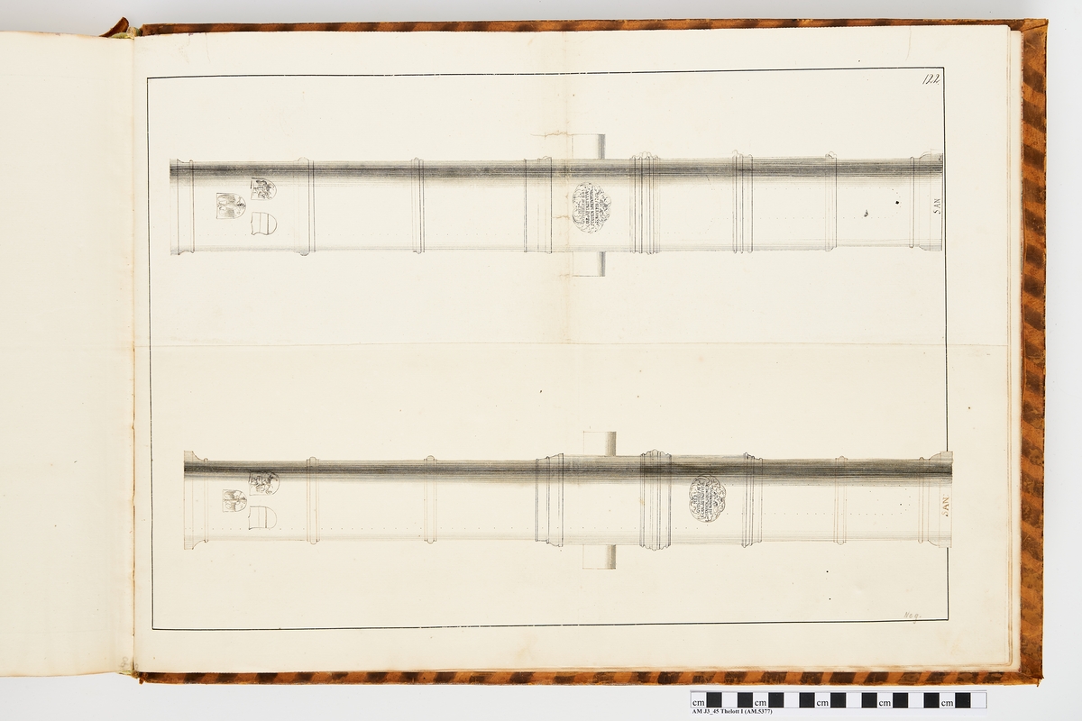 Avbildning föreställande eldrör tagna som troféer av den svenska armén utur staden Sandomir den 22 november 1702. Ingår i volym med avbildade kanontroféer tagna åren 1700-1702.