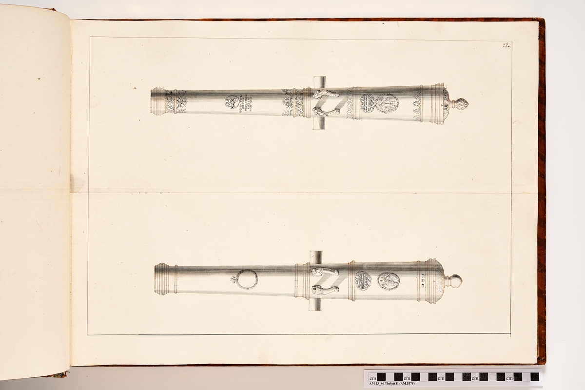 Avbildning föreställande eldrör tagna som troféer av den svenska armén med fästningen Torn den 4 oktober 1703. Ingår i volym med avbildade kanontroféer tagna åren 1703-1706.