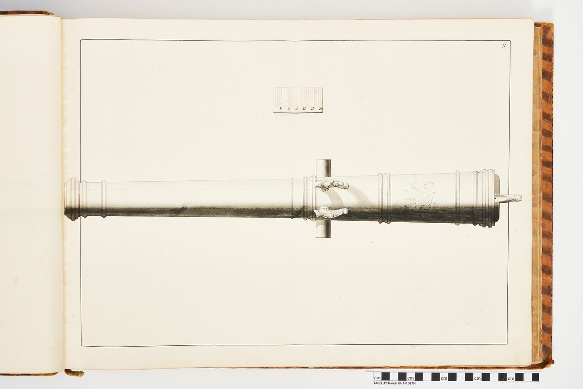 Avbildning föreställande gammalt svenskt metallstycke som legat på rikets fästningar, med Vasaättens vapen och bokstäverna GARS. Ingår i volym med avbildade äldre svenska eldrör förvarade på fästningar samt eldrör erövrade åren 1598-1679.