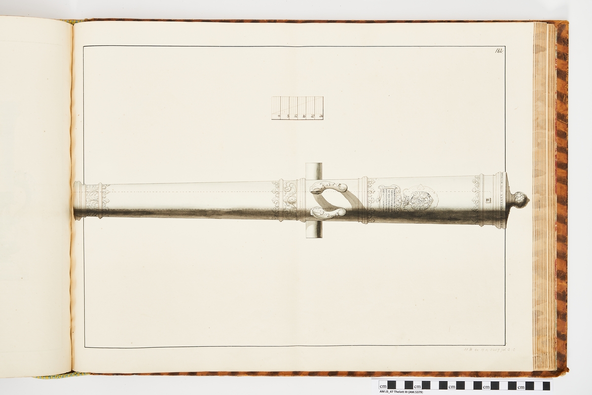 Avbildning föreställande brunklotshisk(?) trofé. Ingår i volym med avbildade äldre svenska eldrör förvarade på fästningar samt eldrör erövrade åren 1598-1679.