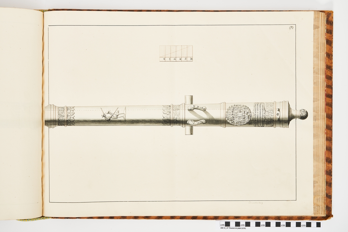 Avbildning föreställande brandenburgsk trofé. Ingår i volym med avbildade äldre svenska eldrör förvarade på fästningar samt eldrör erövrade åren 1598-1679.