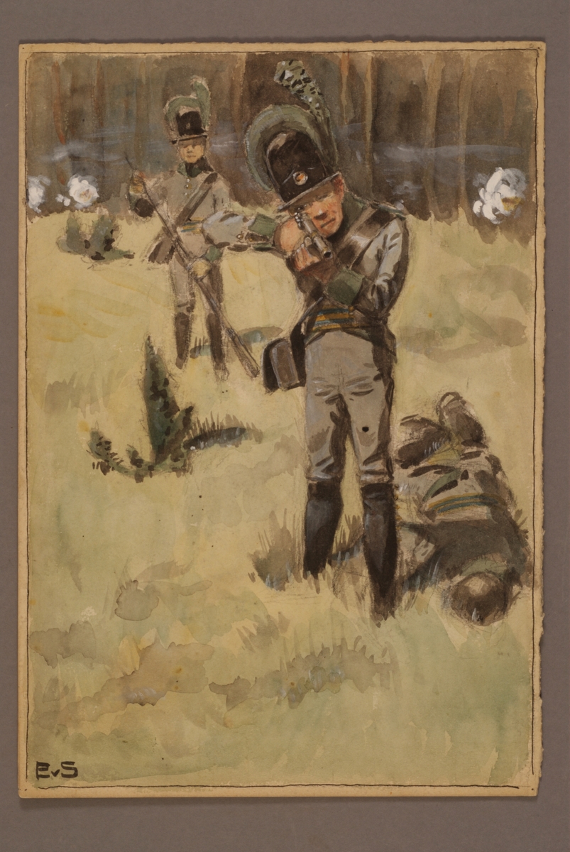 Plansch med uniform för Infanteriets jägare, ritad av Einar von Strokirch.