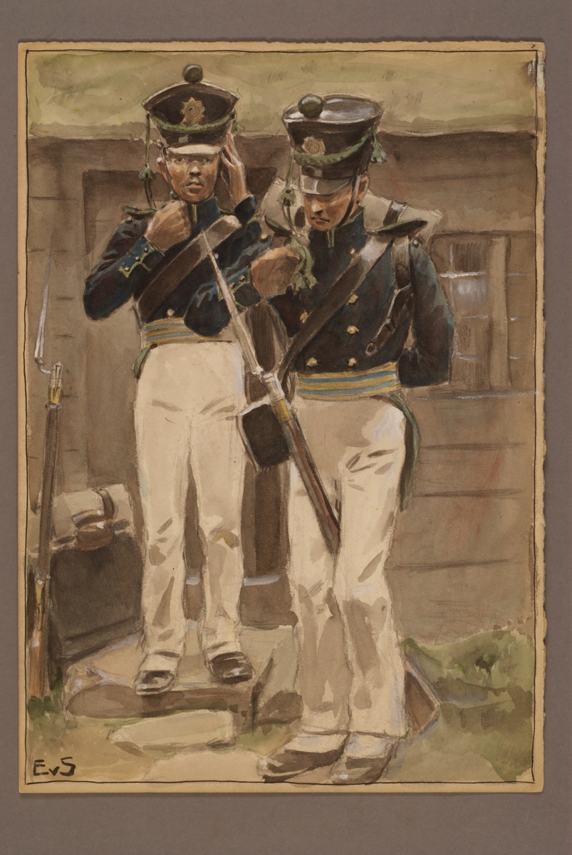 Plansch med uniform för Infanteriets jägare, ritad av Einar von Strokirch.