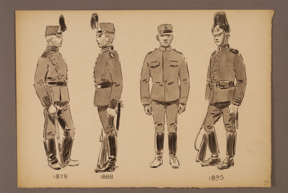 Plansch med uniform för Ingenjörstrupper för åren 1878-1895, ritad av Einar von Strokirch.