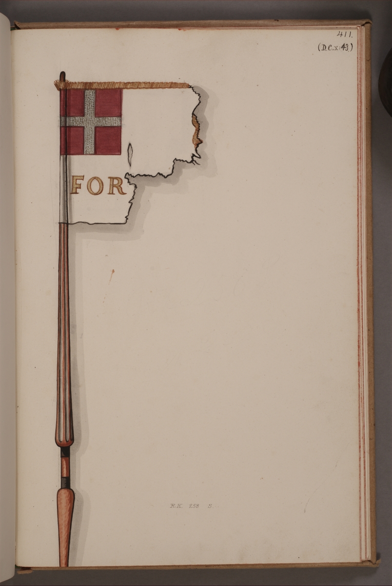 Avbildning i gouache föreställande fälttecken taget som trofé av svenska armén. Det avbildade standaret finns bevarat i Armémuseums samling, för mer information, se relaterade objekt.