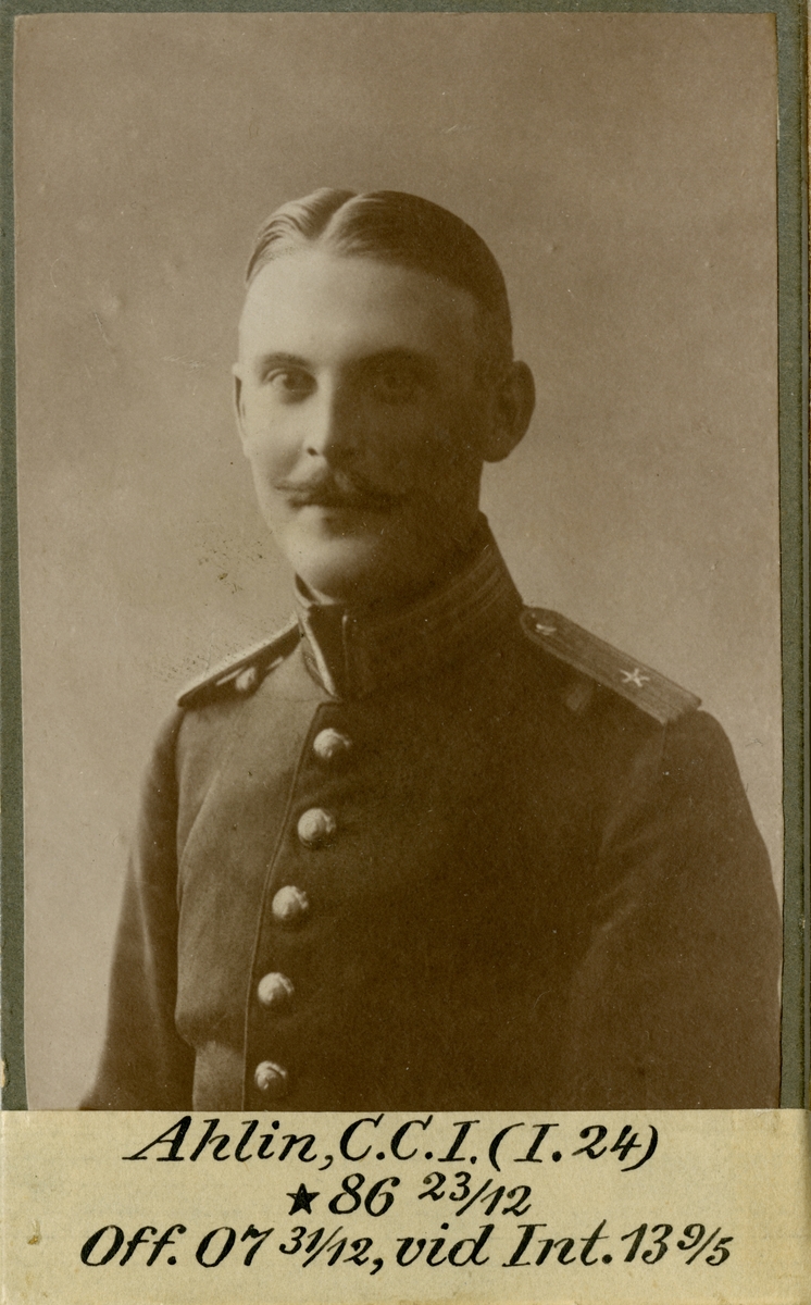 Porträtt av Carl Christian Israel Ahlin, officer vid Norra skånska infanteriregementet I 24 och Intendenturkåren.