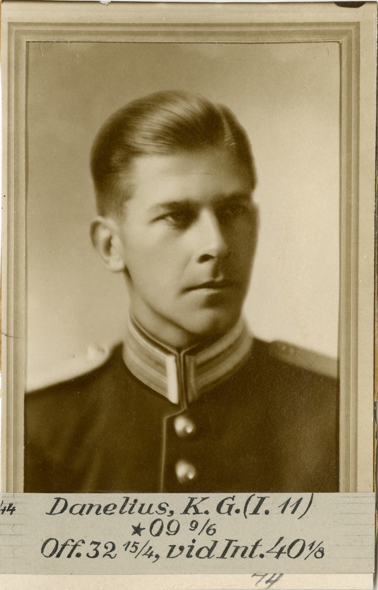 Porträtt av Karl Gustaf Danelius, officer vid Kronobergs regemente I 11 och Intendenturkåren.