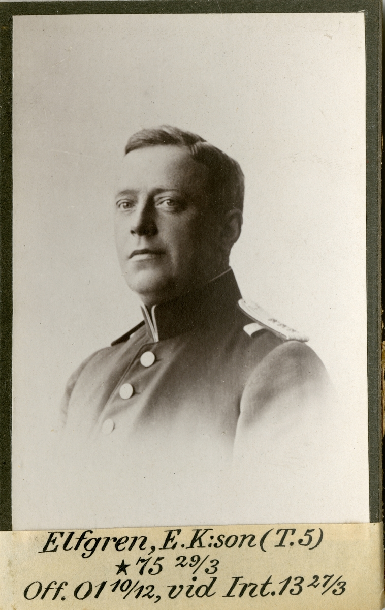 Porträtt av Erik Karleson Elfgren, officer vid Västmanlands trängkår T 5 och Intendenturkåren.