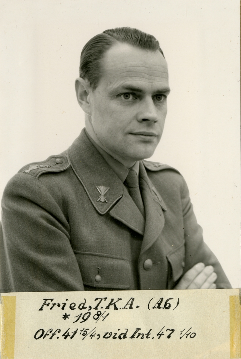 Porträtt av Torsten Karl Axel Fried, officer vid Smålands artilleriregemente A 6 och Intendenturkåren.