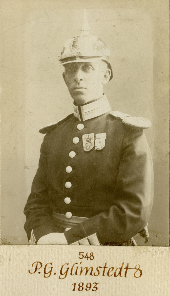 Porträtt av Peter Gustaf Glimstedt, underlöjtnant vid Göta livgarde I 2. Se även AMA.0007412.