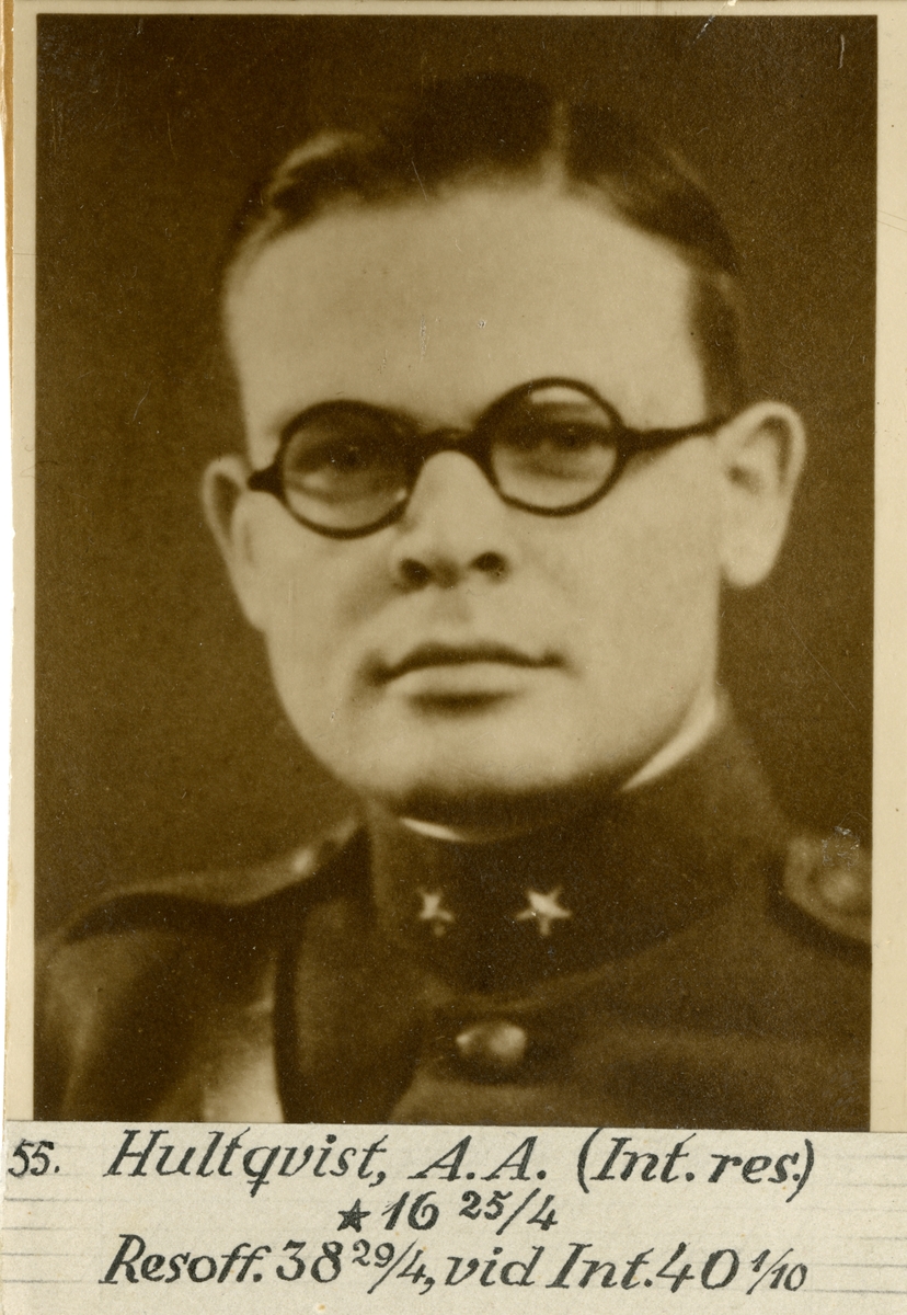 Porträtt av Arne Arvid Hultqqvist, löjtnant vid Intendenturkåren.