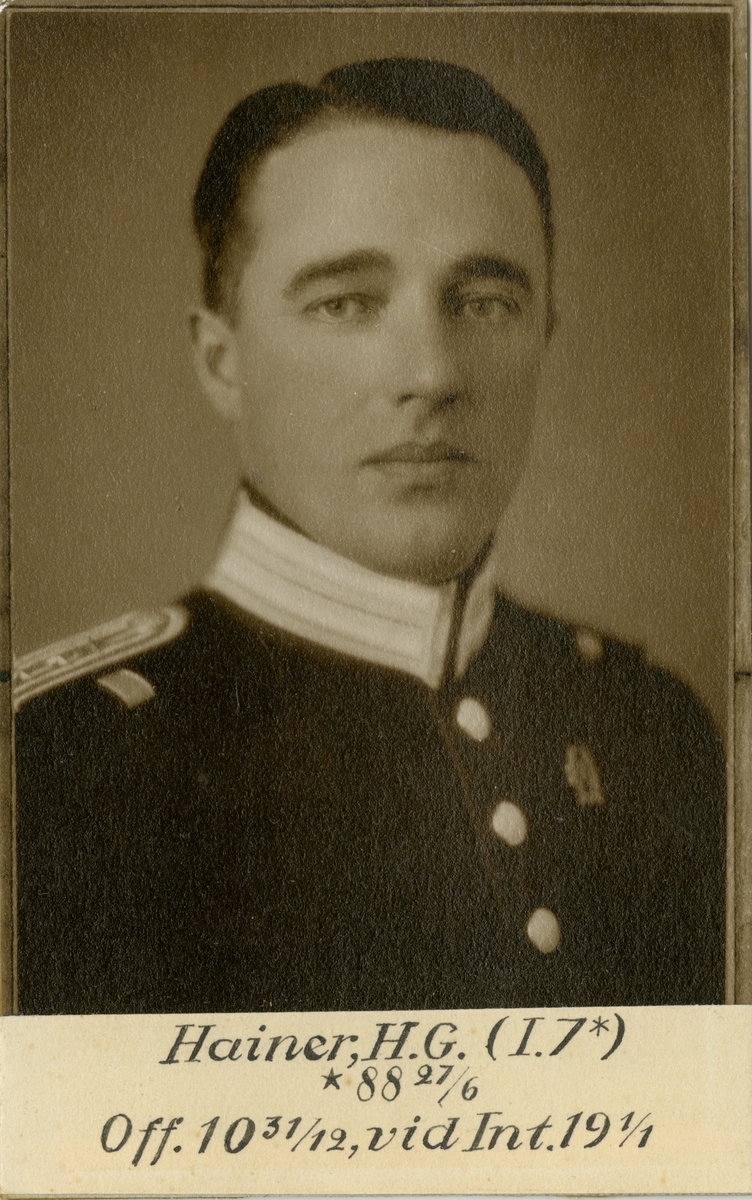 Porträtt av Hans Gunnar Hainer, kapten vid Södra skånska infanteriregementet I 7och vid Intendenturkåren.
