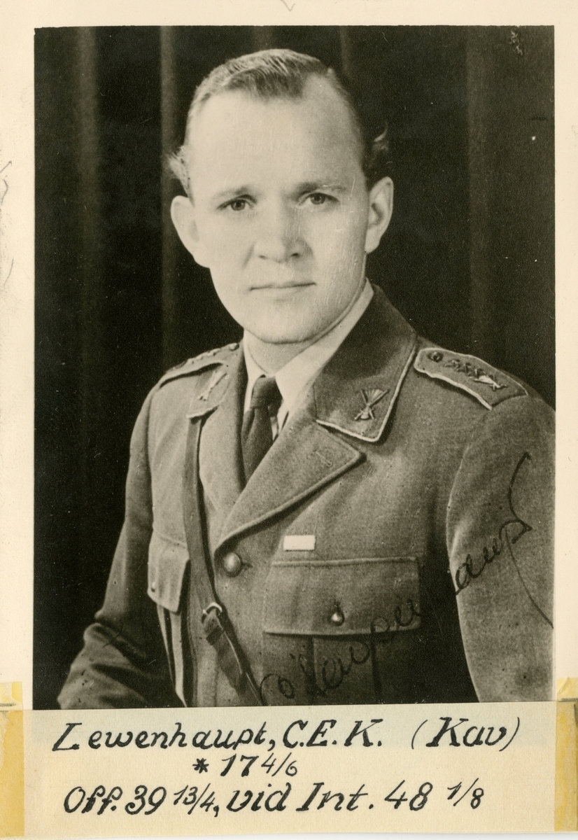 Porträtt av Carl Erik K:son Lewenhaupt, officer vid Kavalleriet och Intendenturkåren.