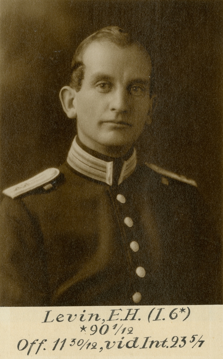 Porträtt av Erik Hugo Levin, officer vid Västgöta regemente I 6 och Intendenturkåren.