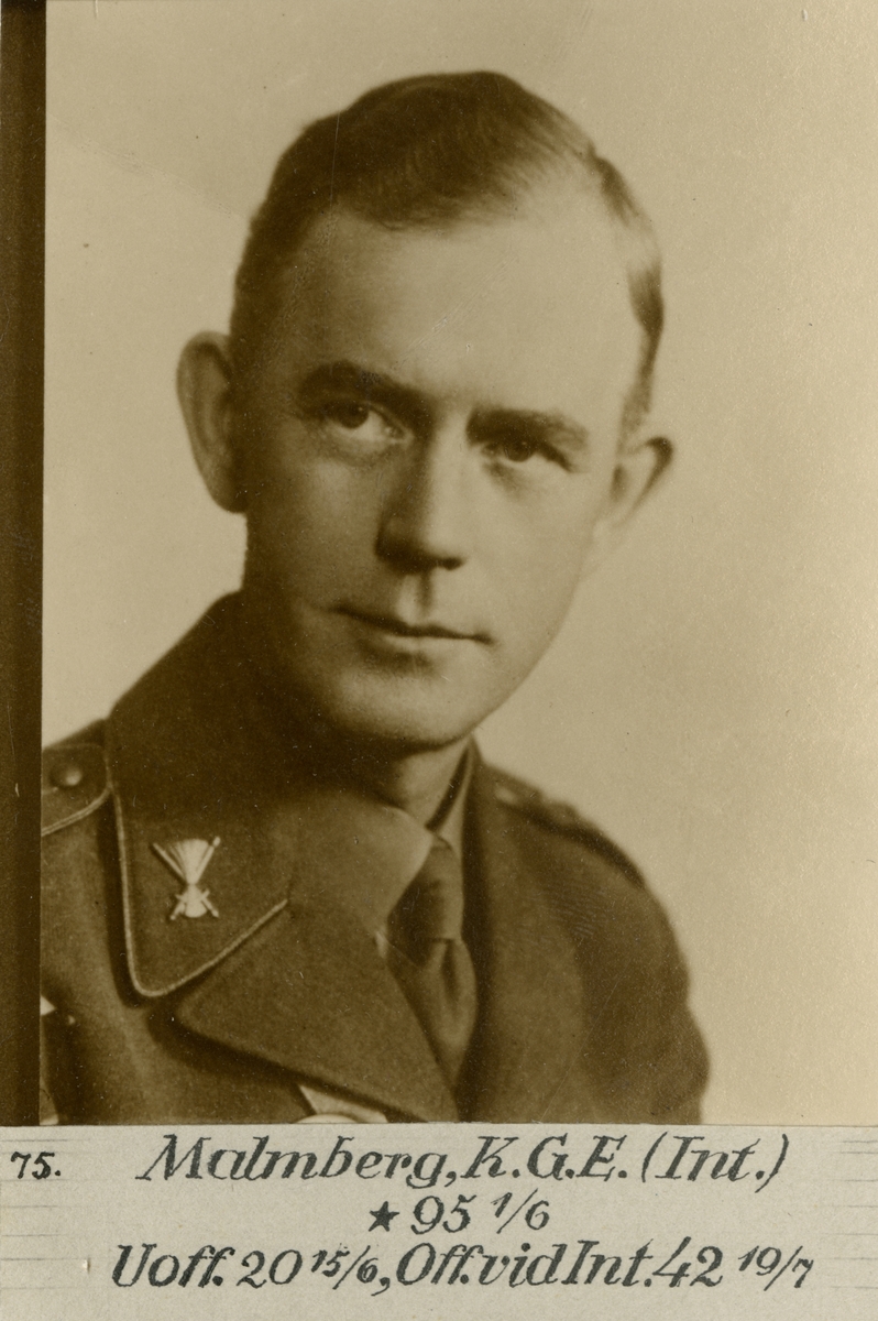 Porträtt av Karl Gunnar Engelbert Malmberg, kapten vid Intendenturkåren.