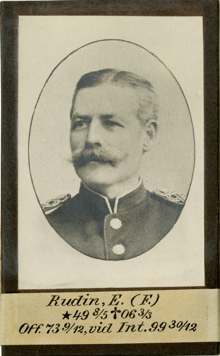 Porträtt av Emil Rudin, officer vid Fortifikationen och Intendenturkåren.