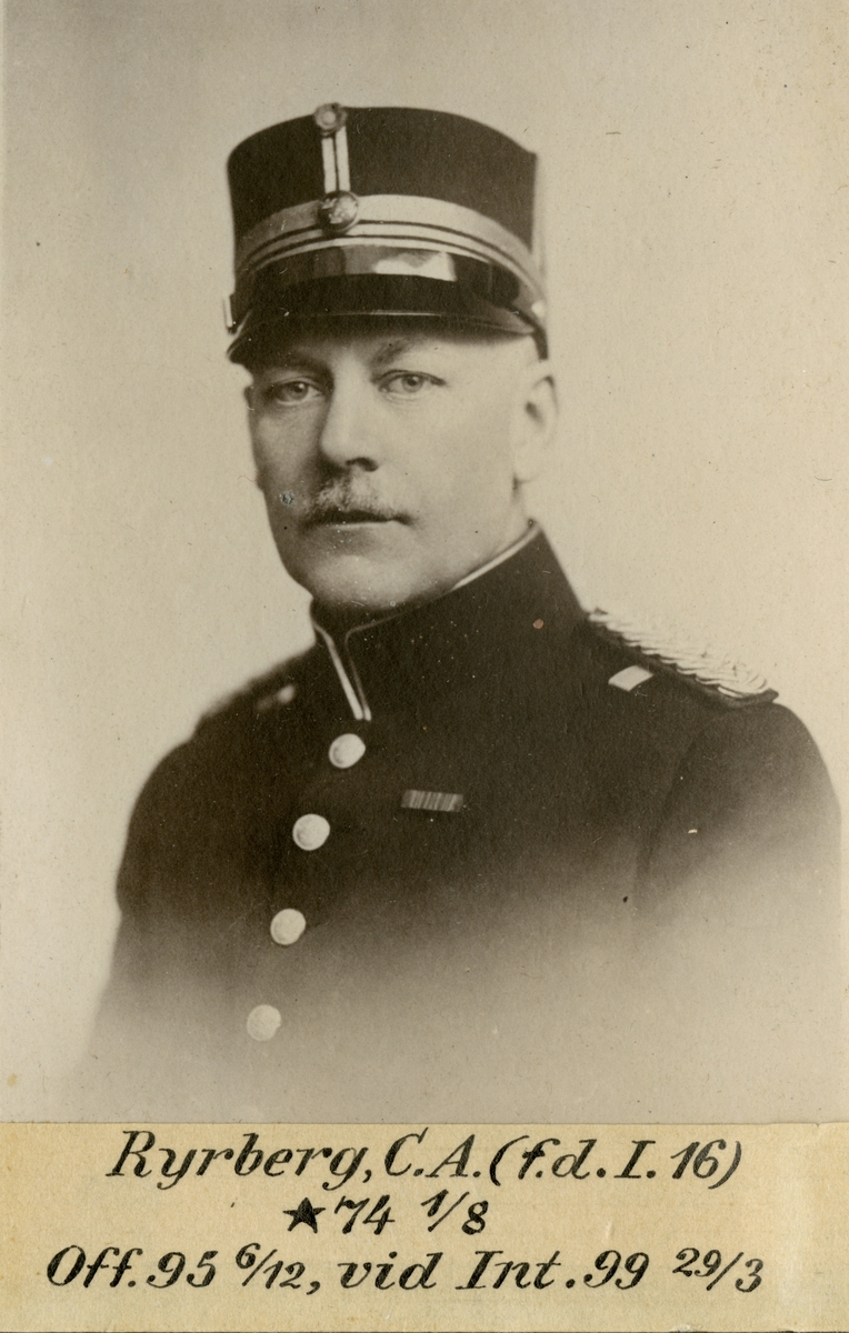 Porträtt av Carl August Ryrberg, officer vid Västgötadals regemente I 16 och Intendenturkåren.