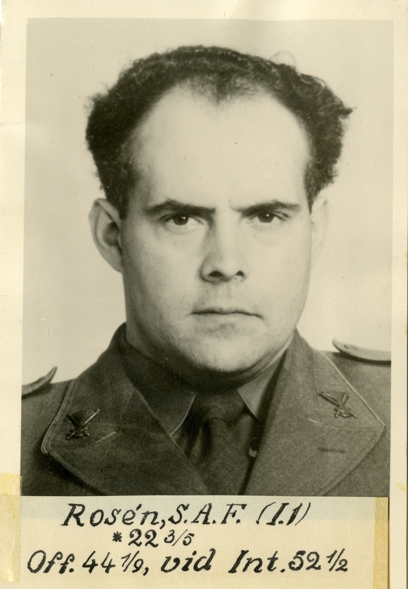 Porträtt av Sven Axel Felix Rosén, löjtnant vid Intendenturkåren.
