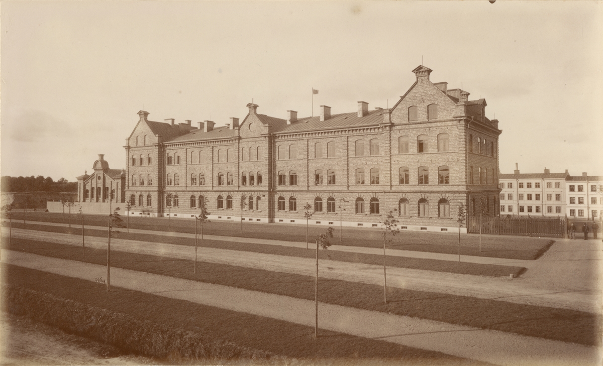 Kasernbyggnad vid Andra Livgrenadjärregementet I 5, nuvarande Källvindsskolan vid Södra Promenaden.