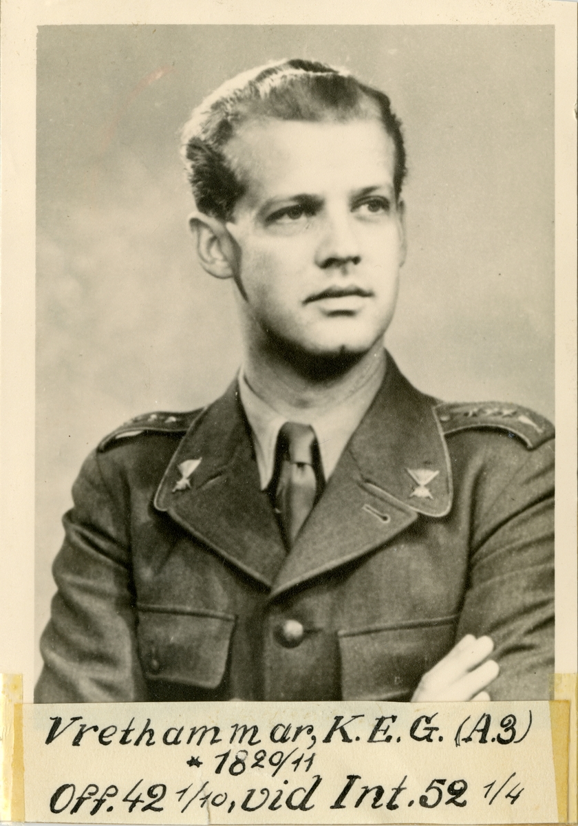 Porträtt av Kurt Erik Göran Vrethammar, officer vid Wendes artilleriregemente A 3 och Intendenturkåren.