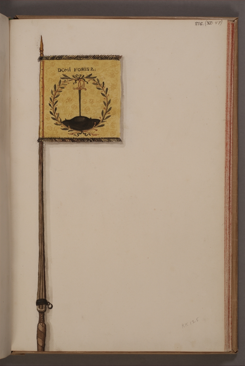Avbildning i gouache föreställande fälttecken taget som trofé av svenska armén. Det avbildade standaret finns bevarat i Armémuseums samling, för mer information, se relaterade objekt.