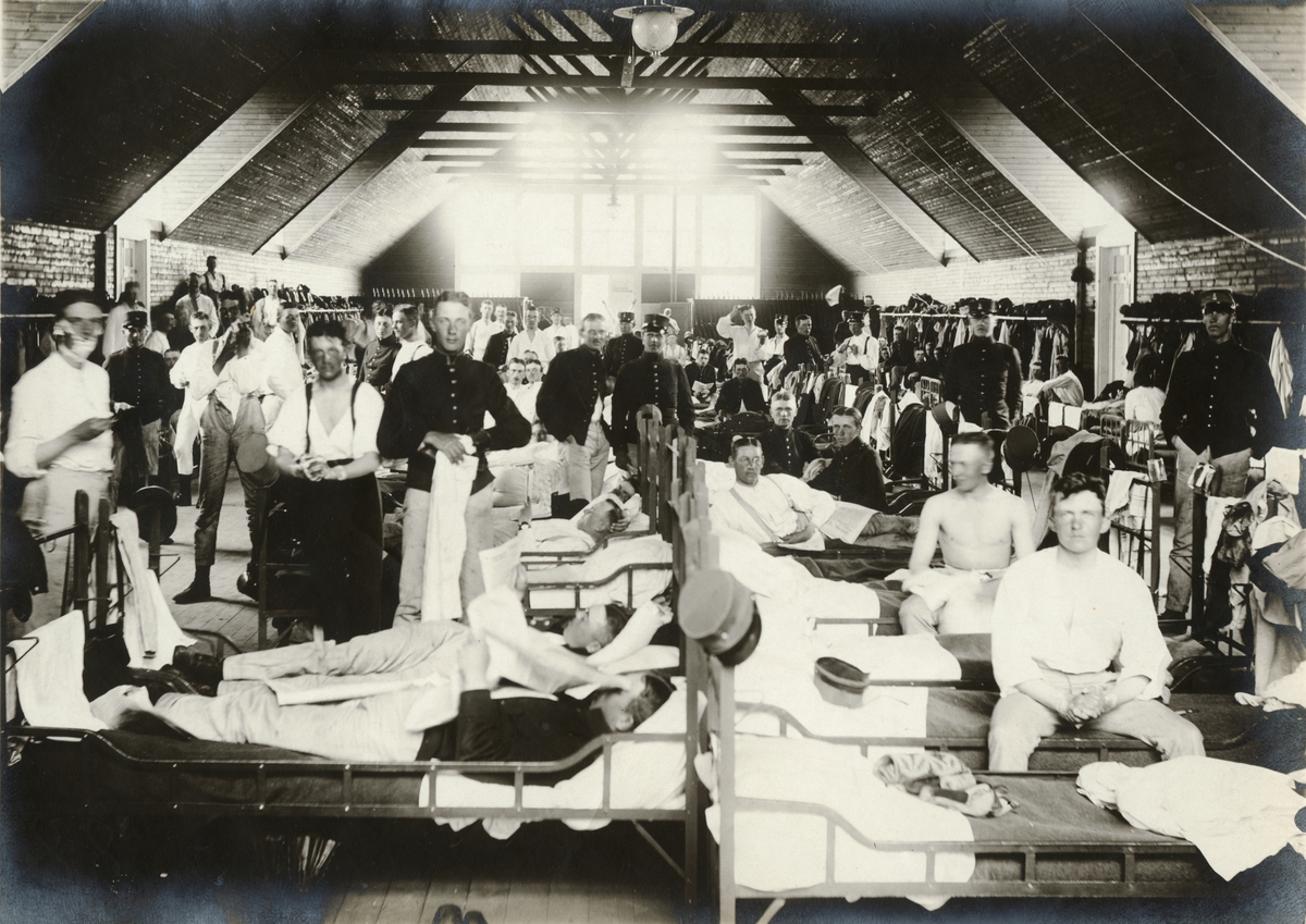 Kadetter vid Krigsskolan Karlberg samlade i sovsal.