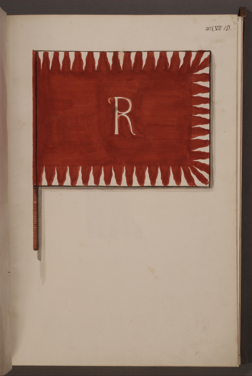 Avbildning i gouache föreställande fälttecken taget som trofé av svenska armén. Den avbildade fanan finns inte bevarad i Armémuseums samling.
