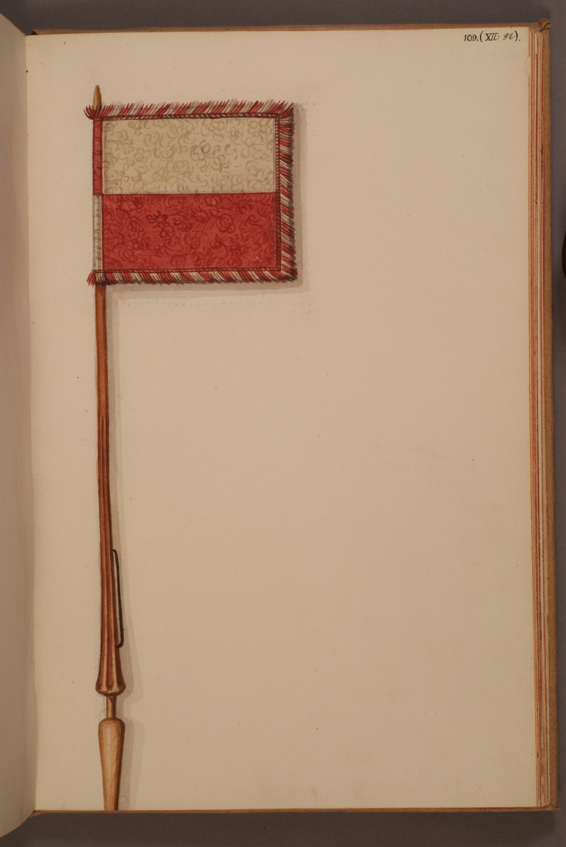 Avbildning i gouache föreställande fälttecken taget som trofé av svenska armén. Det avbildade standaret finns bevarat i Armémuseums samling, för mer information, se relaterade objekt.
