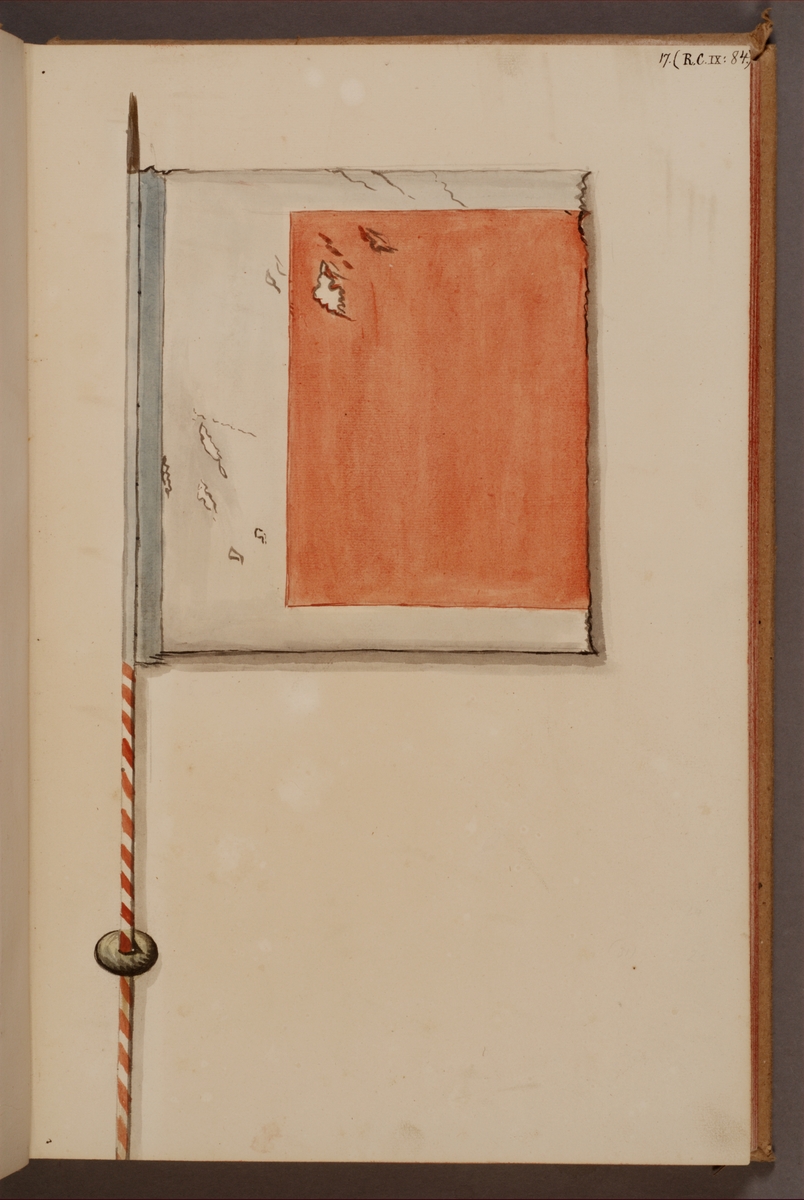 Avbildning i gouache föreställande fälttecken taget som trofé av svenska armén. Möjligen samma fana som AMA.0004919.