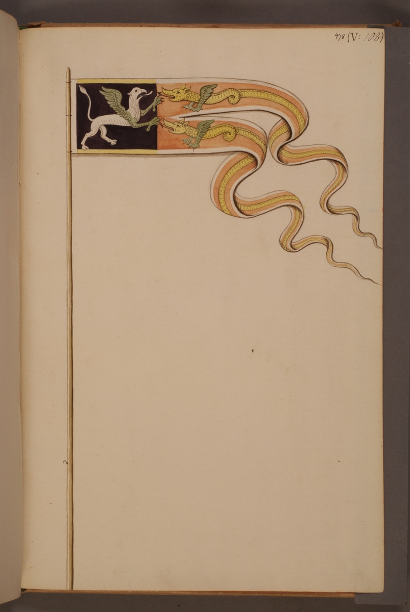Avbildning i gouache föreställande fälttecken taget som trofé av svenska armén. Den avbildade lansfanan finns inte bevarad i Armémuseums samling.