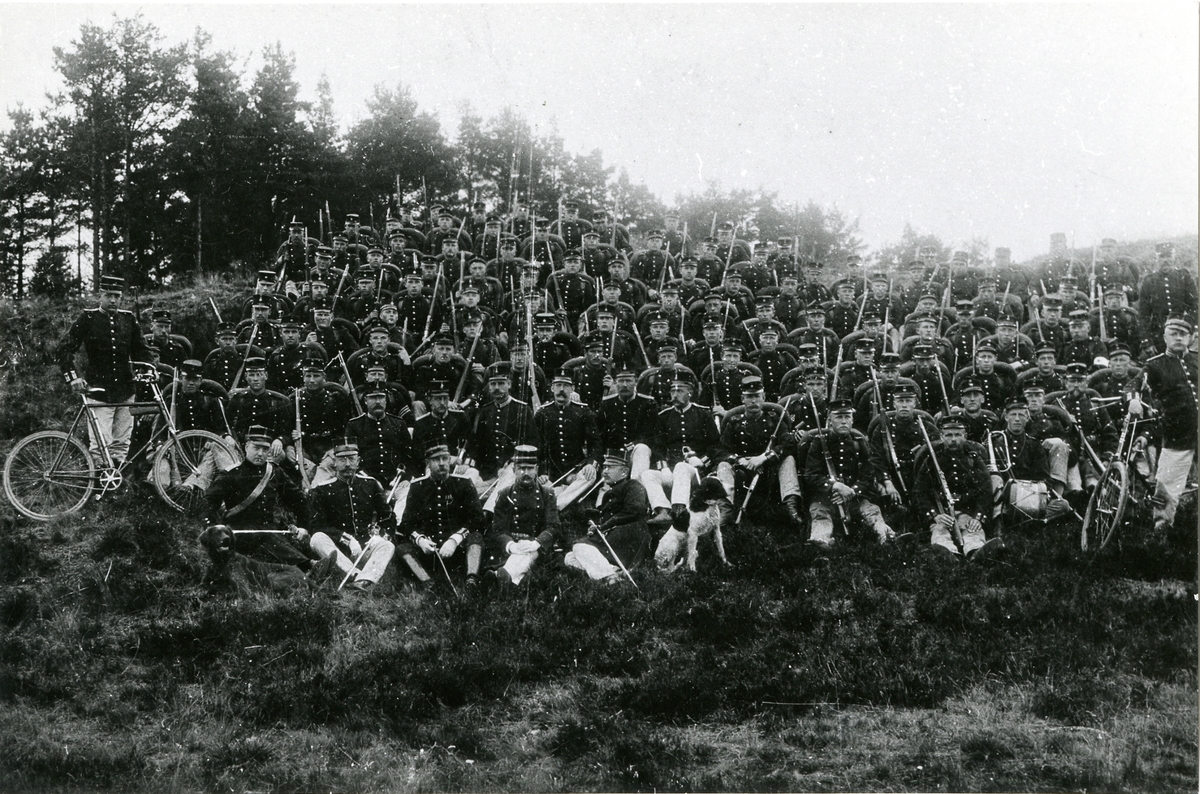 Titel: Grupporträtt av officerare och soldater vid Södermanlands regemente I 10.