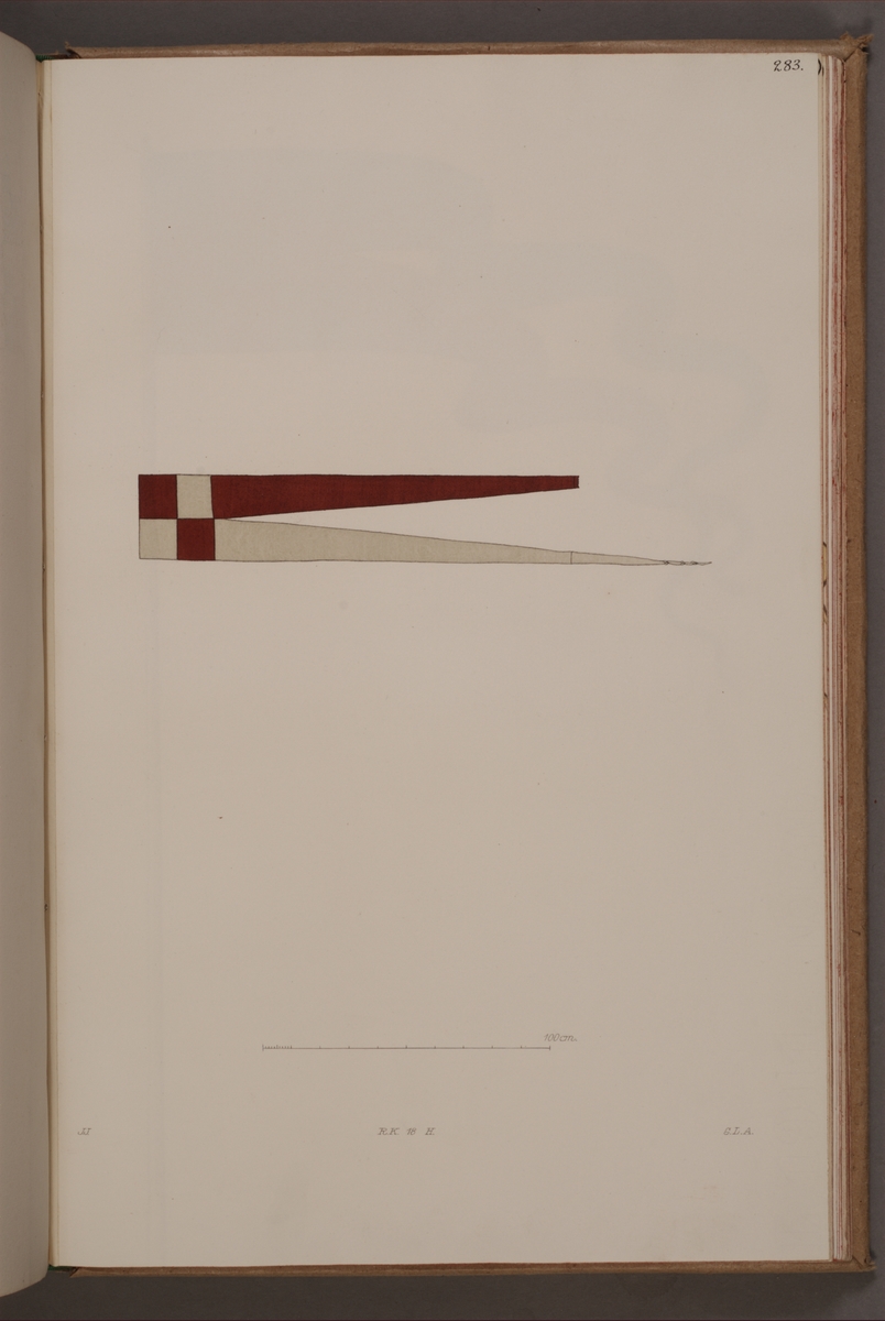 Avbildning i gouache föreställande fälttecken taget som trofé av svenska armén. Den avbildade vimpeln finns bevarad i Armémuseums samling, för mer information, se relaterade objekt.
