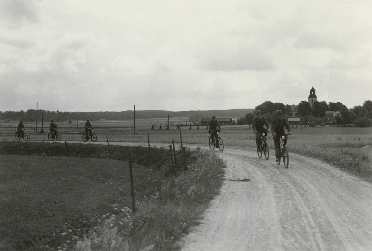 Titel: Soldater från Södermanlands regemente I 10 på cykelmarsch.