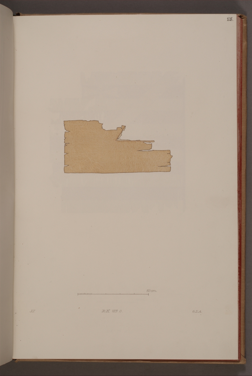 Avbildning i gouache föreställande del av fälttecken taget som trofé av svenska armén. Den avbildade fanan finns bevarad i Armémuseums samling, för mer information, se relaterade objekt.