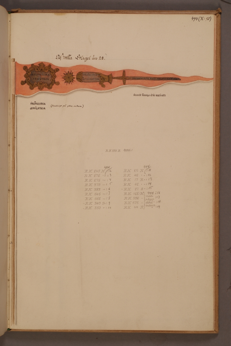 Titel: Avbildning i gouache föreställande fälttecken taget som trofé av svenska armén. Den avbildade vimpeln finns bevarad i Armémuseums samling, för mer information, se relaterade objekt.