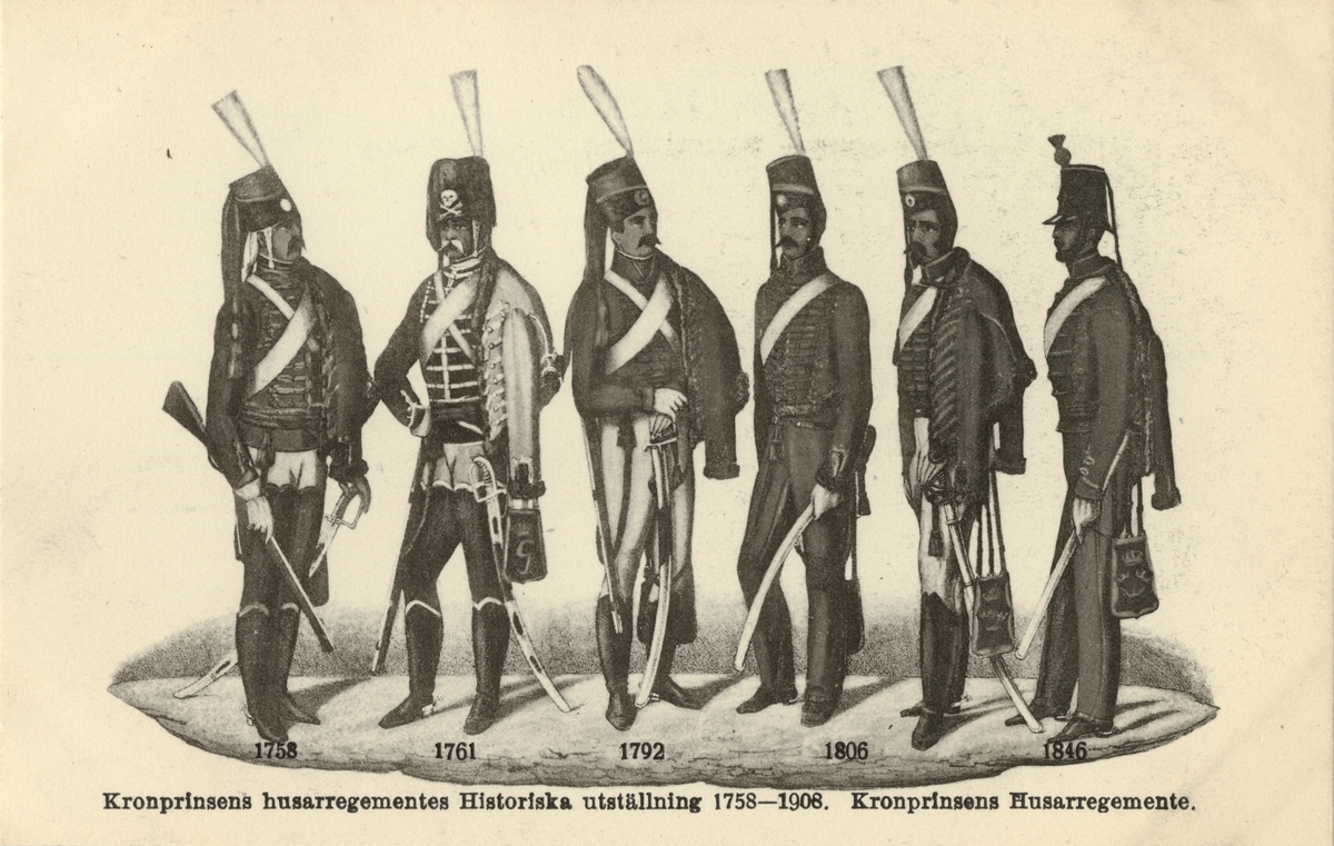 Titel: Uniformer för Kronprinsens husarregemente genom tiderna.