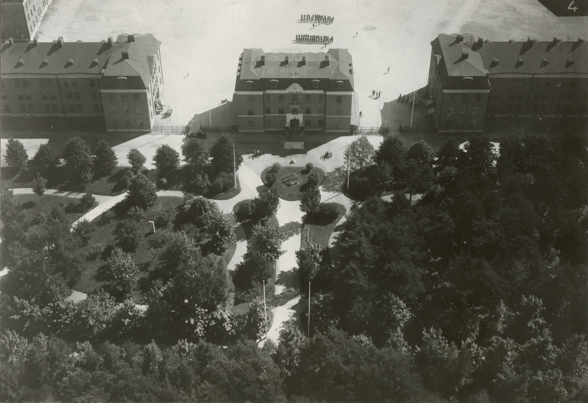 Titel: Flygfotografi över Gotlands infanterikårs I 18 kaserner.