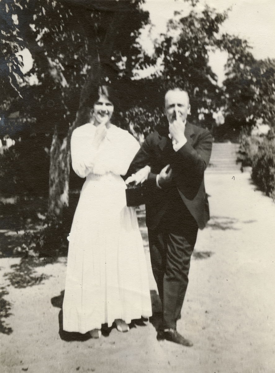 Man och kvinna, troligen vid prins Carls villa Parkudden på Djurgården i Stockholm.