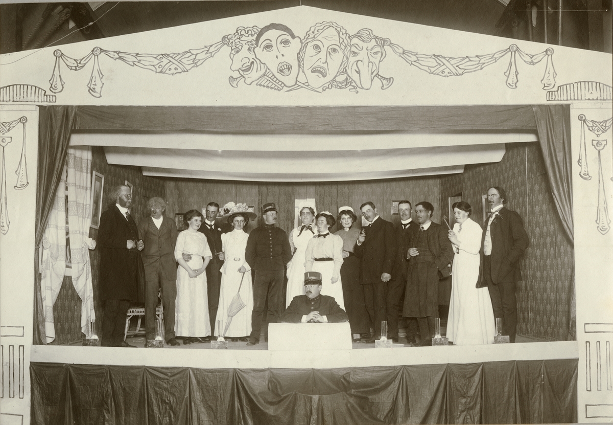 Titel: Gruppbild på teaterscen.