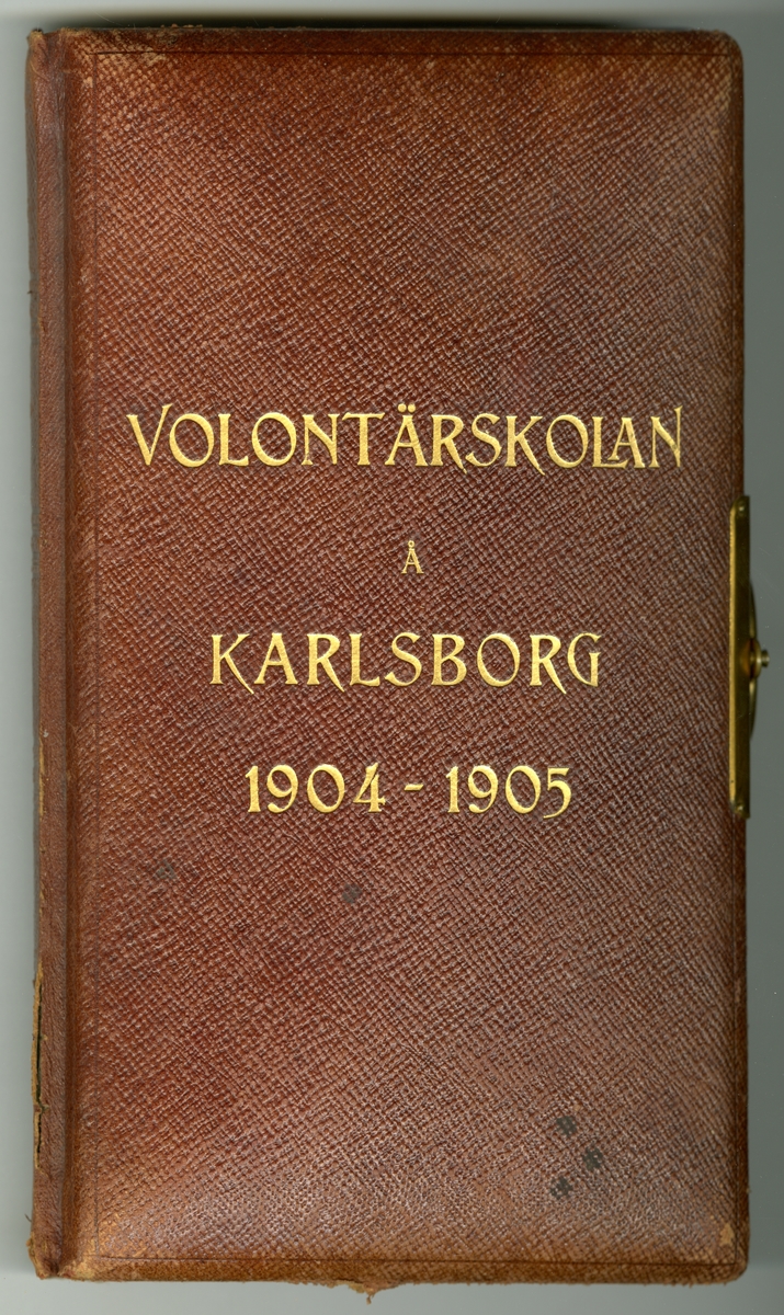 Titel: Fotoalbum innehållande porträtt från Volontärskolan i Karlsborg åren 1904-05.