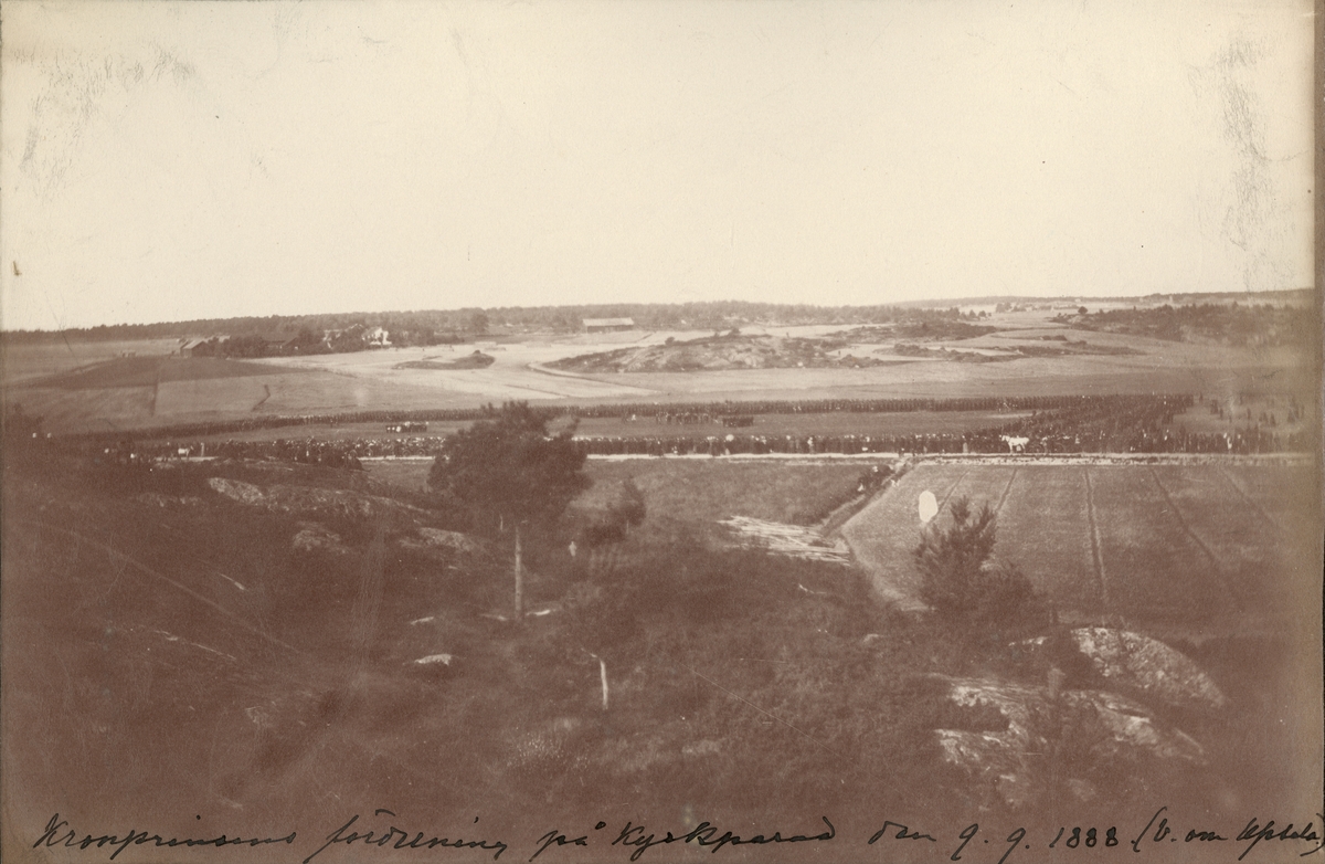 Titel: Text i fotoalbum: "Kronprinsens fördelning på kyrkoparad den 9.9.1888 (v. om Upsala)".