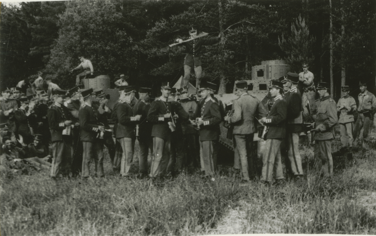 Titel: Stridsvagn m/1921 parkerad i ett skogsbryn.