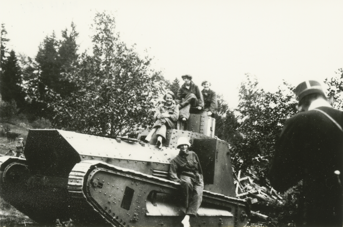 Titel: Fyra kvinnor vid stridsvagn m/1921.