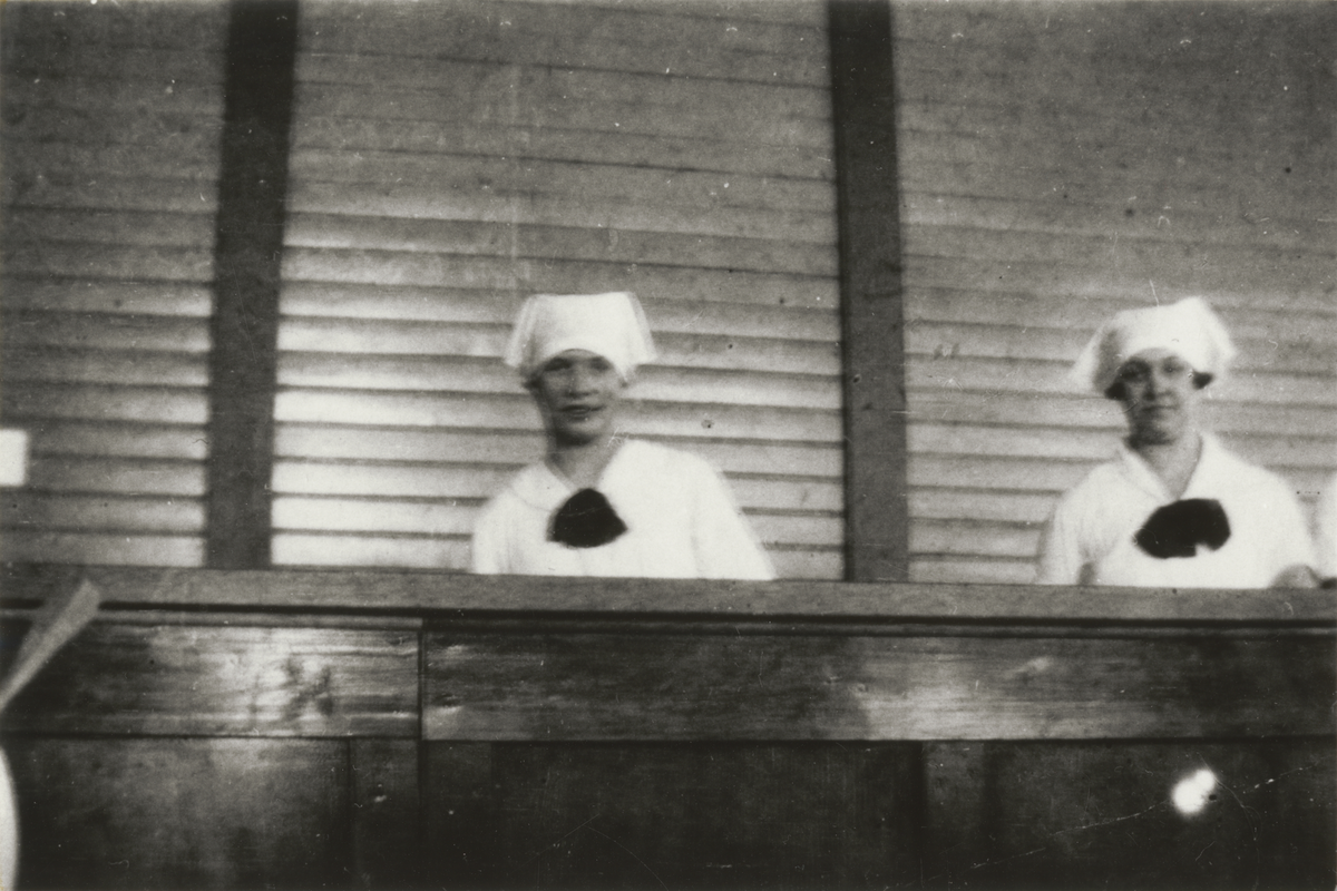 Titel: Två personen bakom en disk.