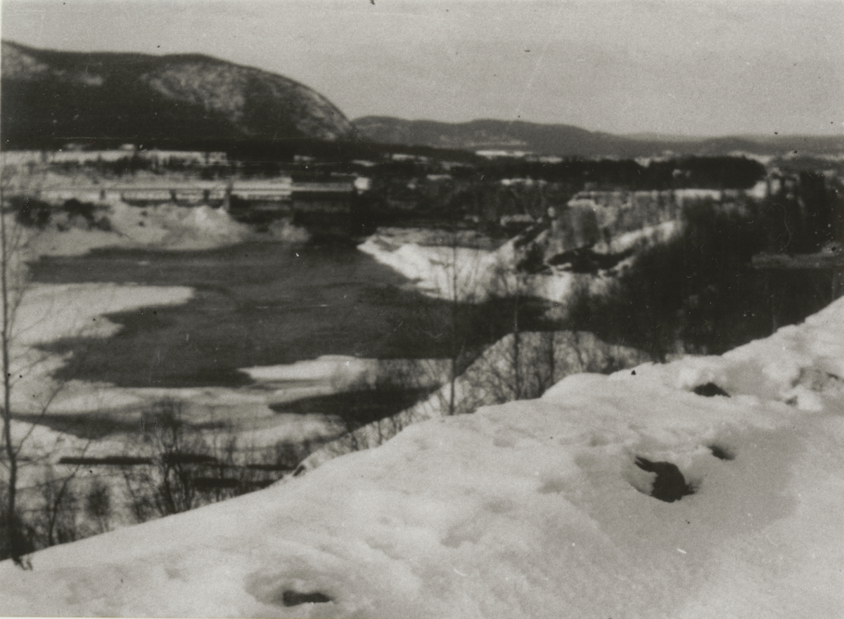 Titel: Man i overall och på skidor vid skogsbryn