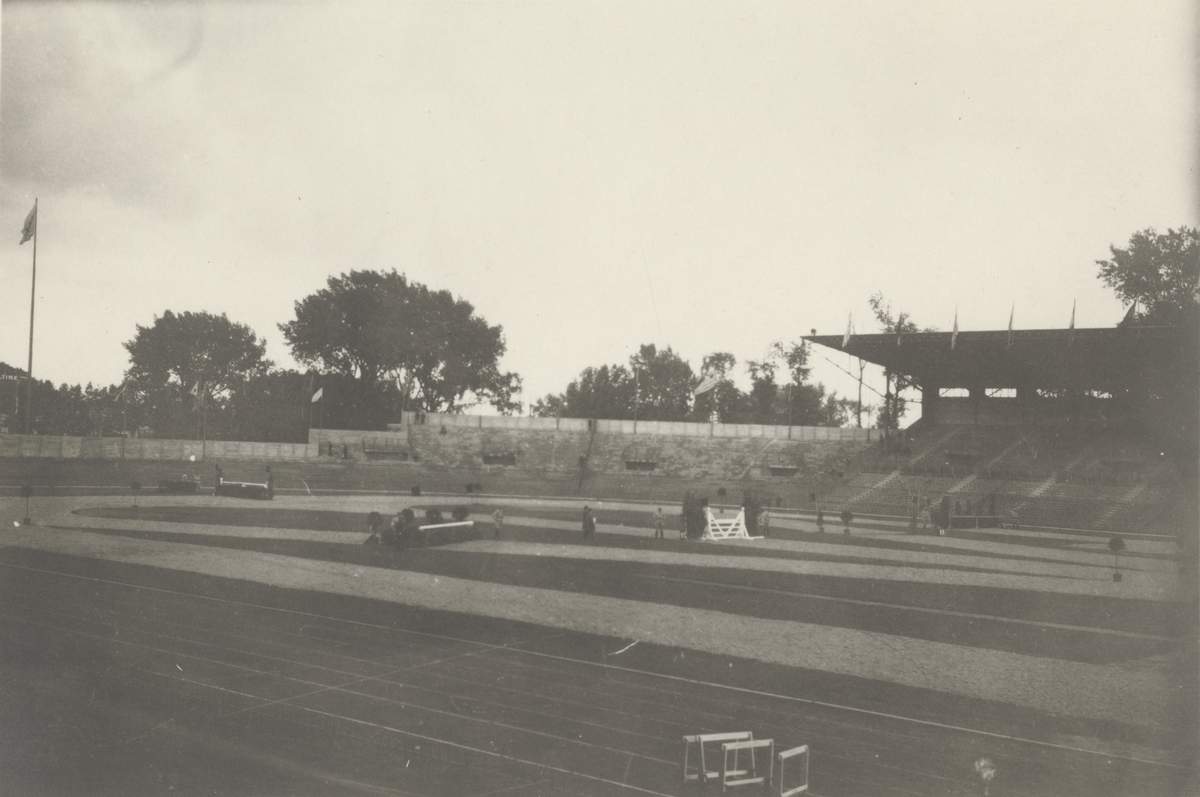 Idrottsstadion från insidan med en del militär personal syns, OS i Antwerpen 1920.