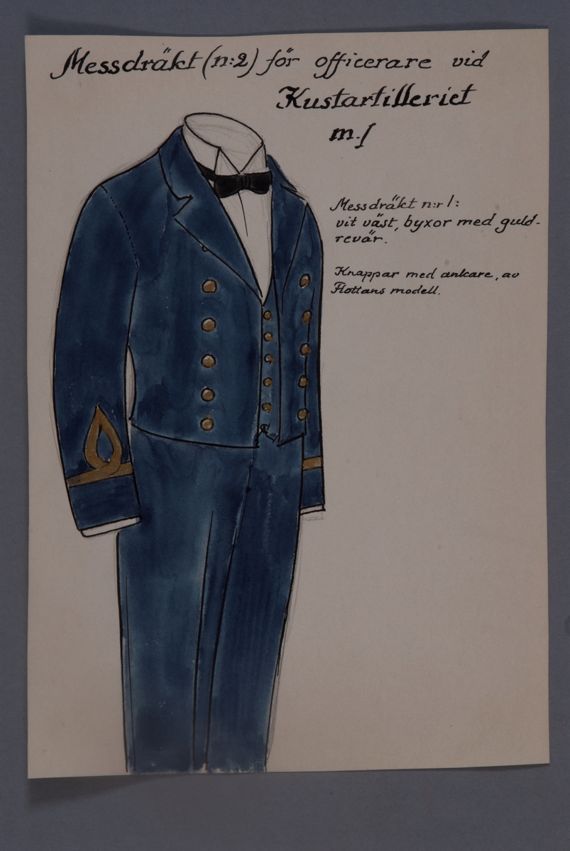Uniformsteckning i original av Einar von Strokirch, mässdräkt för officer vid Kustartilleriet.
