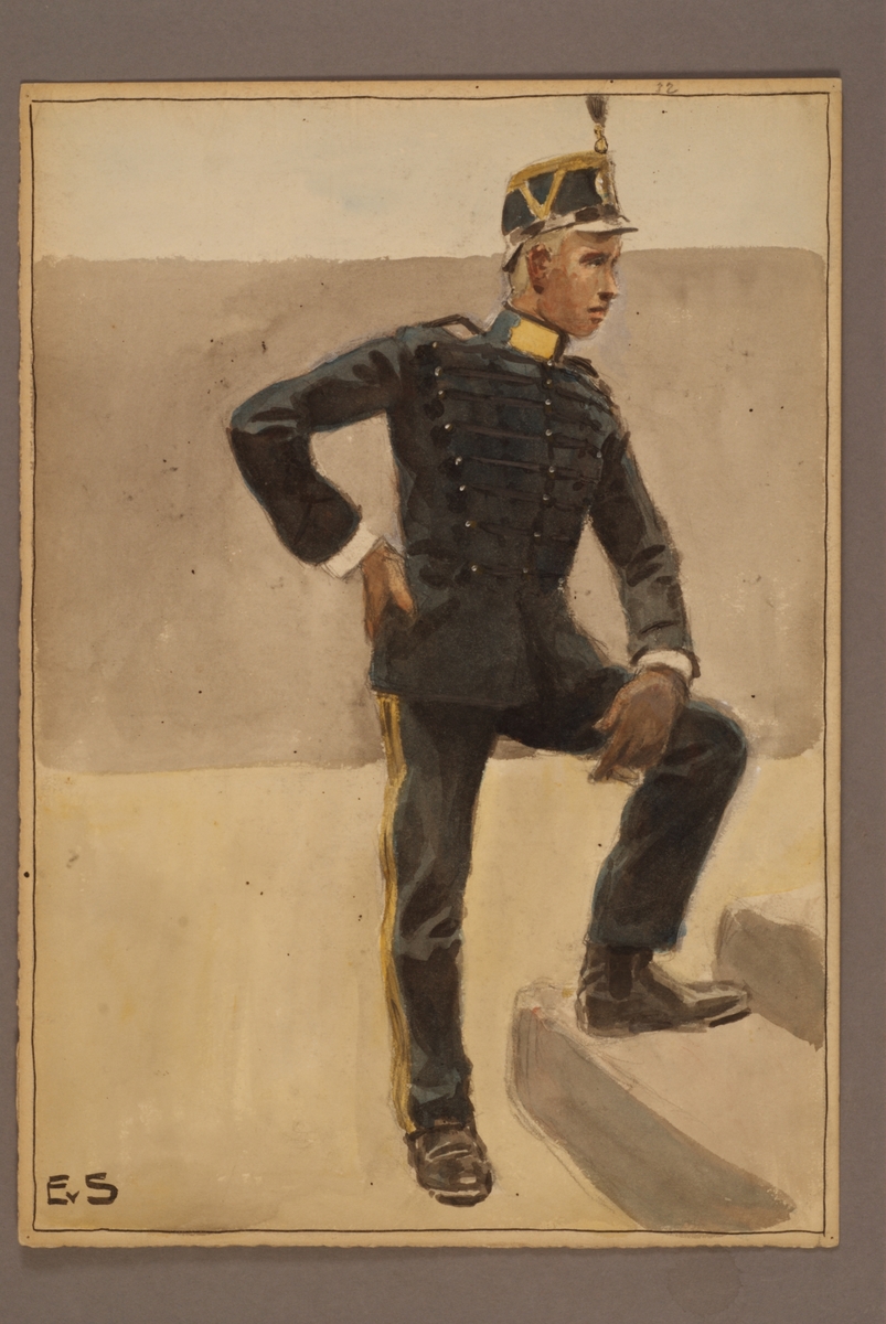 Plansch med uniform för Karlsborgs artilleriregemente, ritad av Einar von Strokirch.
